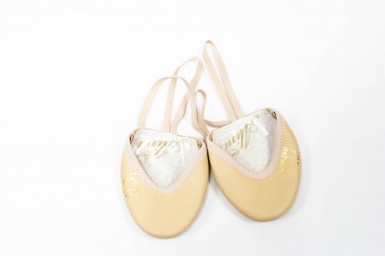 Гимнастические полутапочки с минимальной закрытостью. Подошва из натуральной кожи со специальной отделкой (не скользит). Сочетание мягких машинных швов и ручной отделки, использование х/б тканевой подкладки значительно повышают прочность и гигиенические свойства полутапочек.